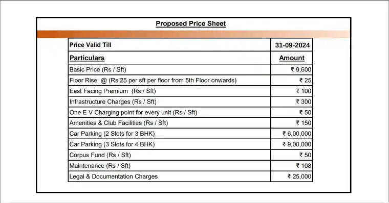 | Type | Saleable Area | Price | Price Breakup |